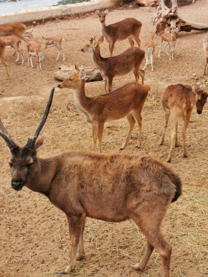 La actividad estará especialmente centrada en los cérvidos, grandes herbívoros fundamentales para el funcionamiento de los ecosistemas forestales. A lo largo del taller, los participantes podrán descubrir cómo estas especies contribuyen a la regeneración de la vegetación y al mantenimiento del hábitat. Entre los animales protagonistas se encuentran el barasingha (Rucervus duvaucelii), el chital (Axis axis), el sambar (Rusa unicolor) y el muntjac (Muntiacus spp.), cuyas características biológicas más relevantes, como el desarrollo anual de sus cuernas, serán explicadas por el equipo educativo.